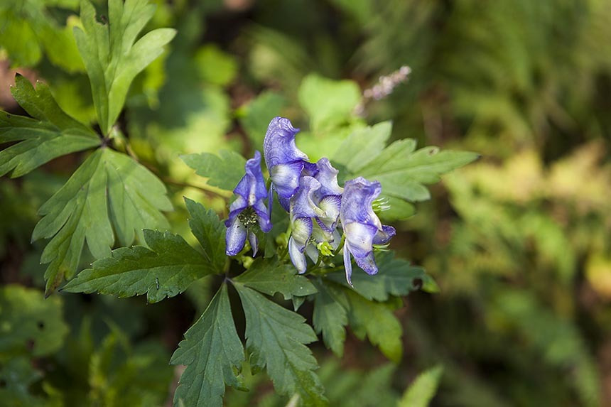 투구꽃의 잎은 크게 3갈래로 갈라지고 양쪽 잎이