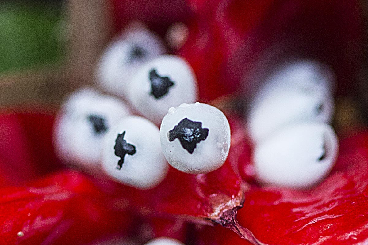 구형의 열매를 하나 채집하여 하얀 헛 종피를 벗겨내어